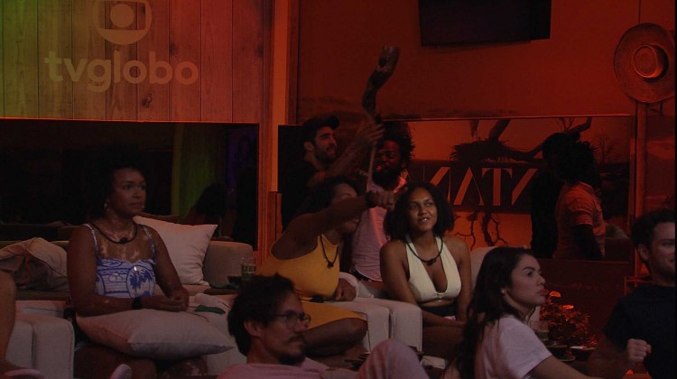 Após a sessão especial de cinema com a novela Pantanal acabar na casa do BBB 22, os brothers aplaudem e comemoram: "Perfeito!". "Eu amei! Que TOP", diz Jessilane.
