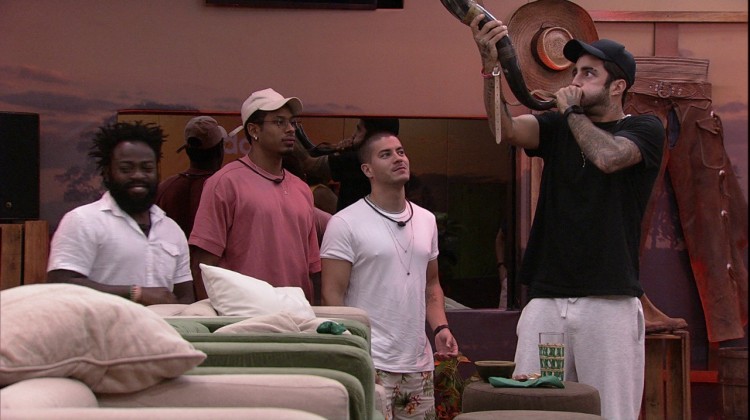 Pedro Scooby e os outros brothers brincam com o berrante