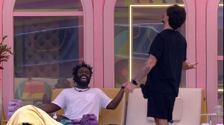 "Ficar de boa, né?", comenta Eliezer. "Fixação. 'Vai ser Lollipop, sim!'. Aí muda o nome: Grungepop, aí acabou. Vou levar as almofadas do Grunge", brinca Douglas. "Eu gosto de vocês perto", retruca o brother. "Então vai para lá, pô!", aconselha o ator.