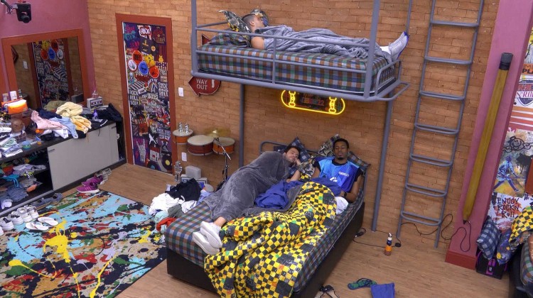 Eliezer conversa com brothers no Quarto Grunge enquanto rola a Prova do Anjo Oral-B.