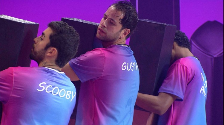 Na Prova do Líder de Resistência Avon, Gustavo abraça batom e imagina: 'Tô fingindo que é a Lalá'