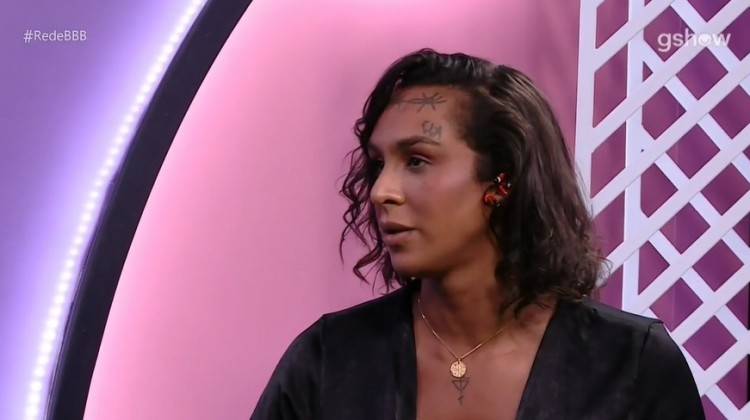 No Bate-Papo BBB, Linn da Quebrada vê o discurso de Tadeu Schmidt para o Paredão Falso do BBB 22, que causou a ida de Arthur Aguiar ao Quarto Secreto. Na tela, ela vê a porcentagem do ator e fica chocada: