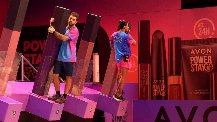 "Atenção às regras: cada jogador deverá se posicionar na sua base segurando o batom líquido Power Stay. Ao longo da prova, a base irá inclinar descendo e subindo. Vence quem resistir por mais tempo".